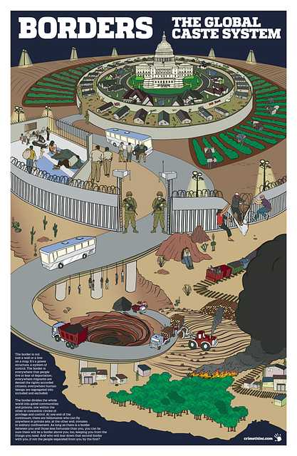 The border is not just a wall or a line on a map. It’s a power structure, a system of control. The border is everywhere that people live in fear of deportation, everywhere migrants are denied the rights accorded citizens, everywhere human beings are segregated into included and excluded.