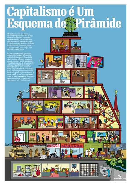 O trabalho de quem está abaixo na pirâmide enriquece quem está no topo. Para se manter estável, a economia precisa atrair cada vez mais recursos — colonizando novos continentes, forças de trabalho e aspectos da vida cotidiana. As desigualdades resultantes desse ciclo só podem ser mantidas por uma repressão cada vez maior.