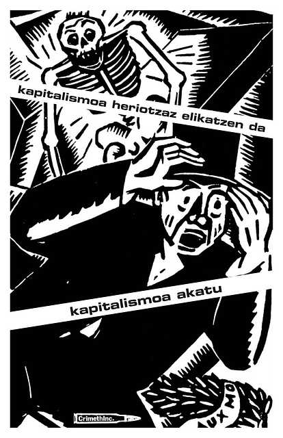 Merkatuak bizia kentzen du eta suntsipena uzten du. Zure bizitzako ordu ordezkaezinak saltzera behartzen zaitu nagusiak eta burokratak aberas daitezen: heriotza epeka. Lurjabeak familiak utzarazteagatik saritzen ditu, ingeniariak gerramakinak asmatzeagatik, politikariak gentrifikazioagatik eta genozidioagatik.