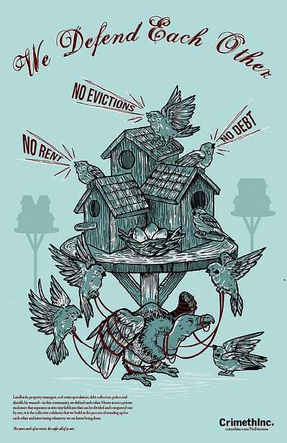Landlords, property managers, real estate speculators, debt collectors, police and sheriffs, be warned—in this community, we defend each other. Home is not a private enclosure that separates us into tiny fiefdoms that can be divided and conquered one by one; it the collective solidarity that we build in the process of standing up for each other and intervening whenever we see harm being done.